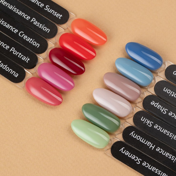 2. Нанести цветное базовое покрытие «Renaissance» в технике легкого выравнивания. Время полной полимеризации в LED/UV – лампе составляет 2 минуты.