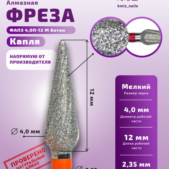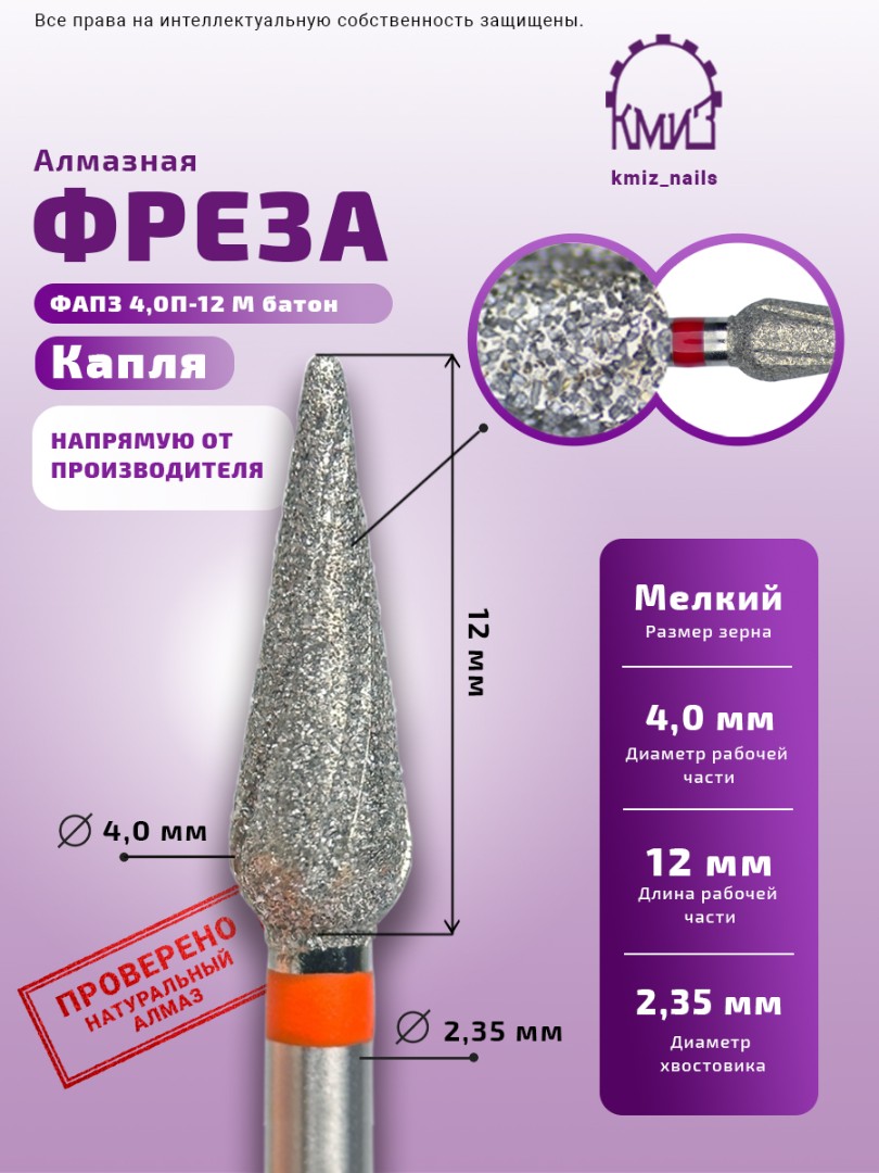 Для расчёта рейтинга используются общие оценки товара за всё время. Оставьте свой отзыв о товаре: Фреза алмазная ФАПЗ 4,0П-12 М батон