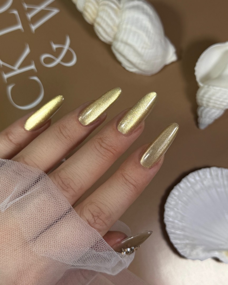 За блик, который играет на ногтях, как солнце.