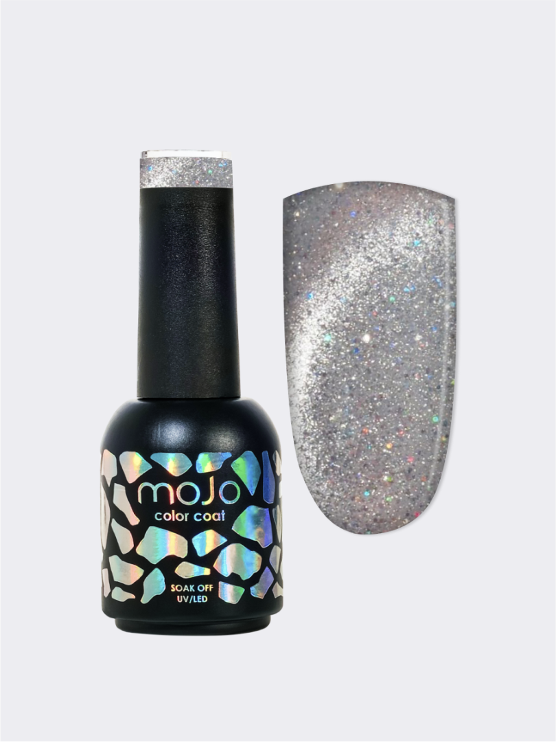 Высокая концентрация металлических и светоотражающих частиц создает яркий блик днем и сверкает ночью при попадании искусственного света на ноготь. Крупные голографические блестки делают маникюр роскошным и элегантным.