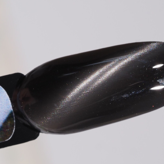 • Для получения эффекта «Кошачий глаз» поднесите магнит на расстоянии 1 см от поверхности ногтя перед полимеризацией последнего слоя гель-лака. Удерживайте 10 секунд.