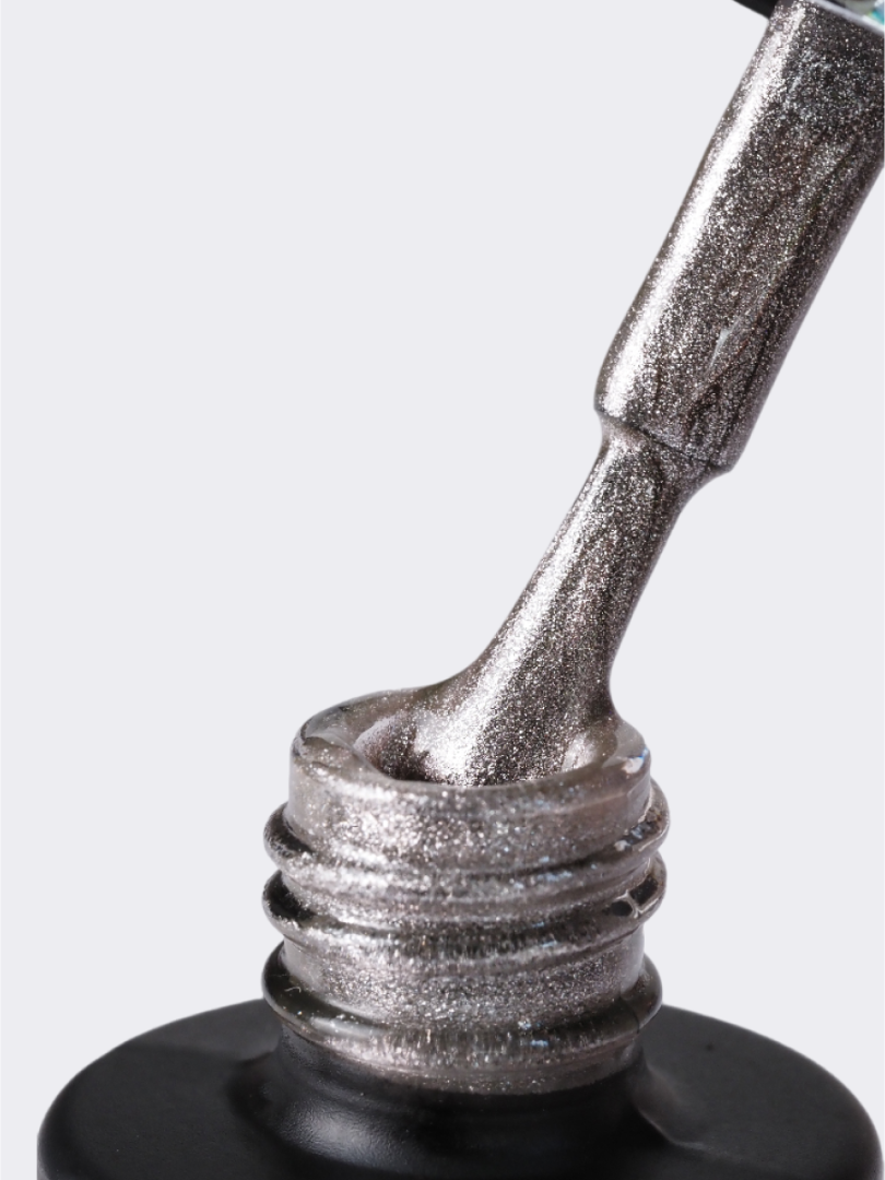 Гель-лак на каучуковой основе обладает отличной укрывистостью, не растекается и хорошо самовыравнивается. Покрытие насыщено пигментами, хорошо наносится в 1-2 слоя, благодаря металлическим частицам создает на ногтях эффектный блик. Материал не вызывает жжения во время полимеризации, имеет слабовыраженный запах.
