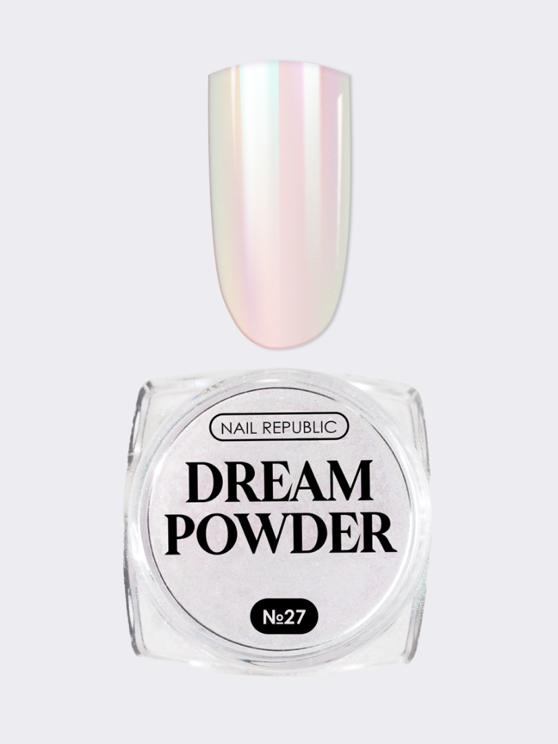 Dream powder – это жемчужная мелкодисперсная пыльца, с помощью которой можно создать разноцветные переливы, как на темных, так и на светлых покрытиях. 16 вариантов оттенков дают волю для экспериментов: наносите на однотонные покрытия или даже на гель-лаки с шиммером.