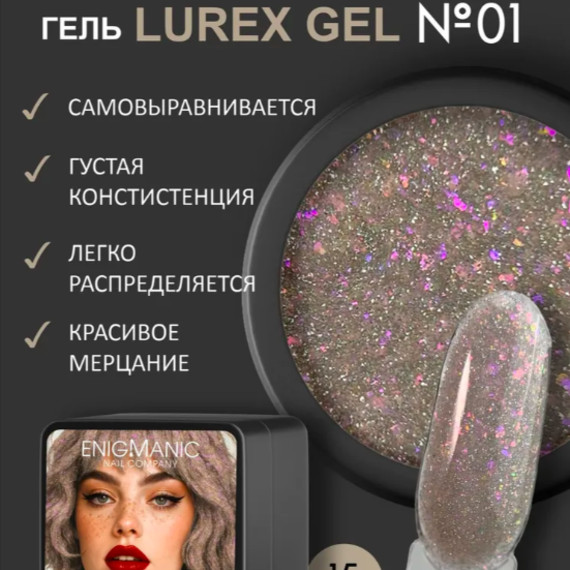 ENIGMANIC LUREX GEL — профессиональный жёсткий моделирующий гель для ногтей с шиммером, блёстками, светоотражающими частицами и слюдой. Подходит для наращивания, укрепления и моделирования длины ногтей.