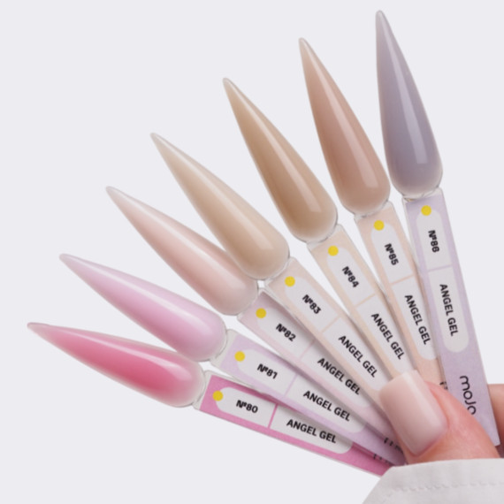 ANGEL GEL – идеальное сочетание жесткости и элегантности. Универсальная палитра под любой тон кожи: бежевые, розовые и серый оттенки.