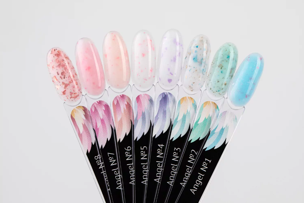 Angel №1- Небесно-голубой оттенок с розовой поталью и нюдовым шиммером.