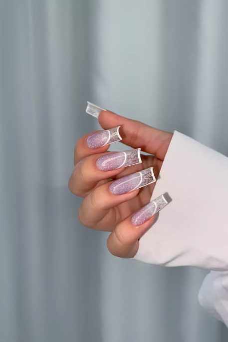 - Мерцающие частицы равномерно распределяются по ногтевой пластине, не выступают наружу из покрытия и не требуют опила;
