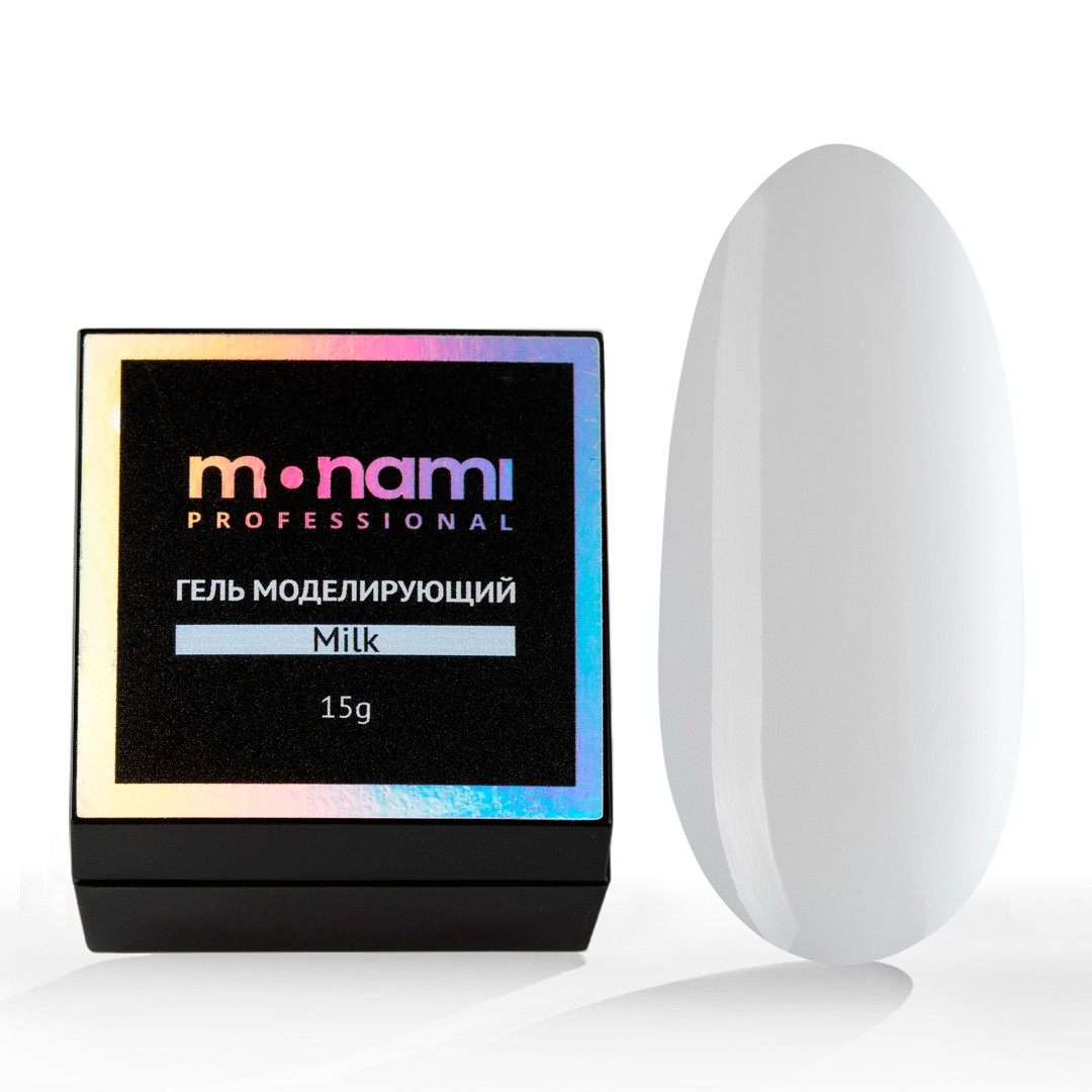 Гель Monami для наращивания, молочного оттенка. Гели послушные в работе, легко выравниваются, имеют липкий слой, средне-жидкой консистенции. Уникальная формула материала позволяет создавать крепкие, «носибельные» ногти.