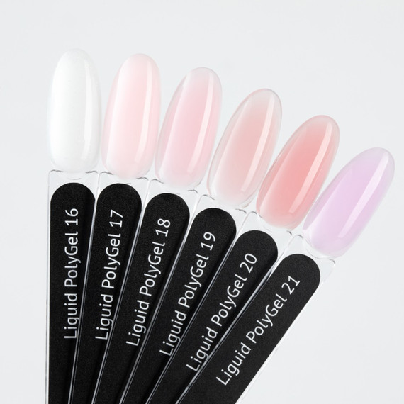 Жидкий полигель Liquid Polygel в молочном цвете с шиммером -  это универсальный продукт, который наносится как база, но твердый как гель. После полимеризации имеет минимальную остаточную липкость. Инновационный материал для укрепления, выравнивания и донаращивания ногтей.