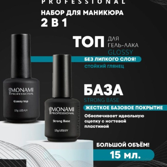 Для расчёта рейтинга используются общие оценки товара за всё время. Оставьте свой отзыв о товаре: Набор MONAMI Базовый №3, 15 г Base Strong+top Glossy, 15 г