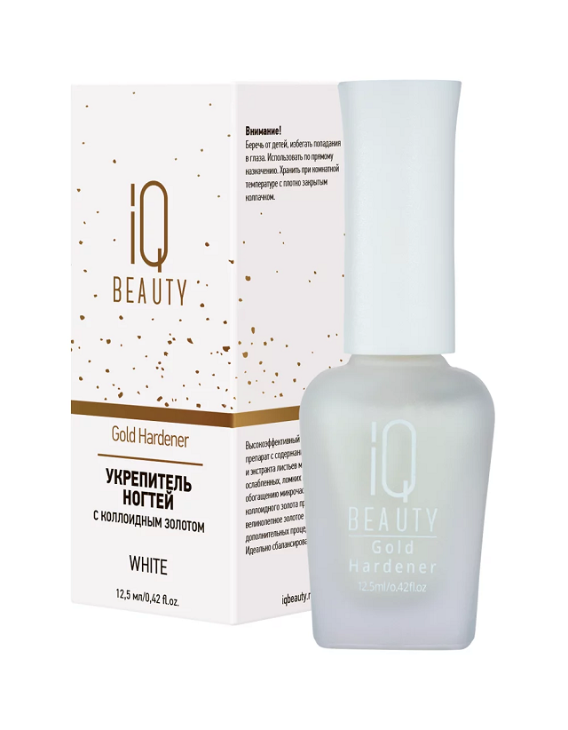 Средство для ногтей/ Укрепитель с коллоидным золотом Iq Beauty Gold Hardener/ для ослабленных и ломких ногтей, 12.5 мл (White)