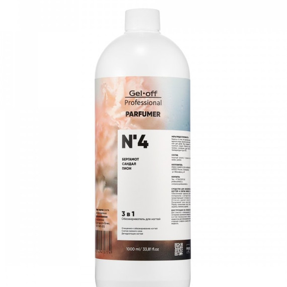 Обезжириватель для ногтей 3 в 1 GEL-OFF PARFUMER № 4 (бергамот, сандал, пион), 1000 мл.